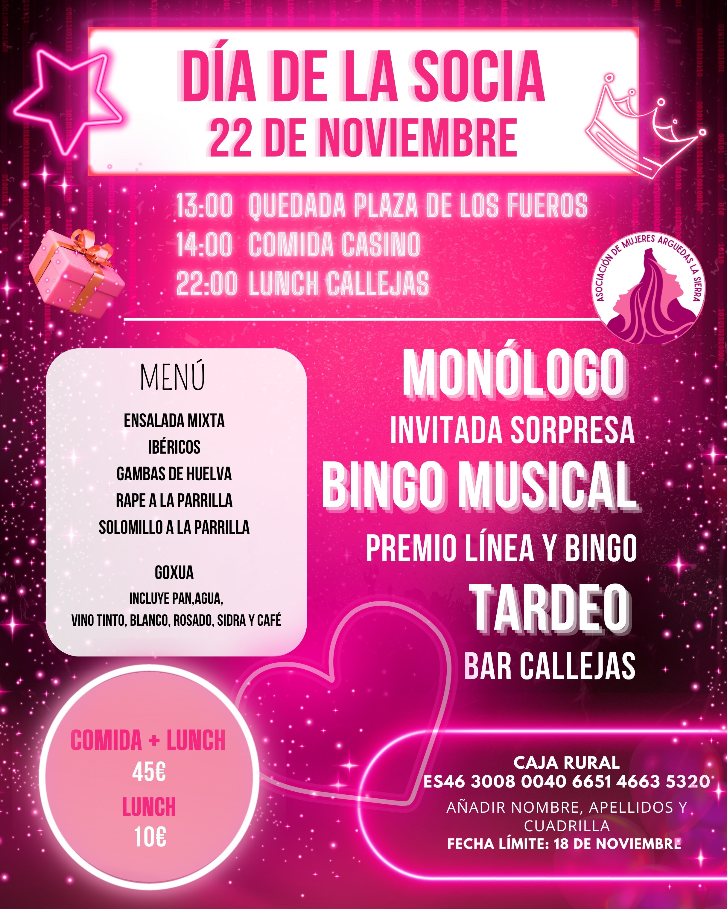 Comida, monólogo, bingo y tardeo con lunch.
