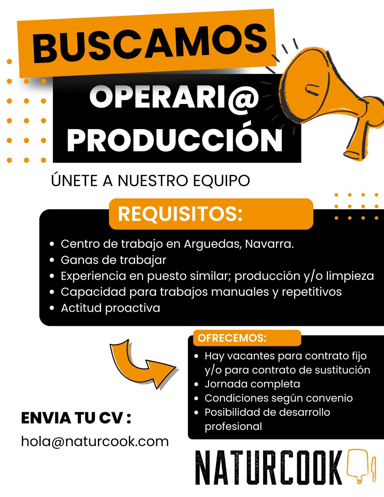 Enviar CV a hola@naturcook.com