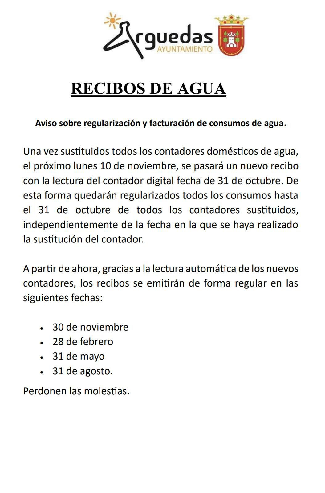Aviso sobre la regularización y facturación de los consumos de agua.